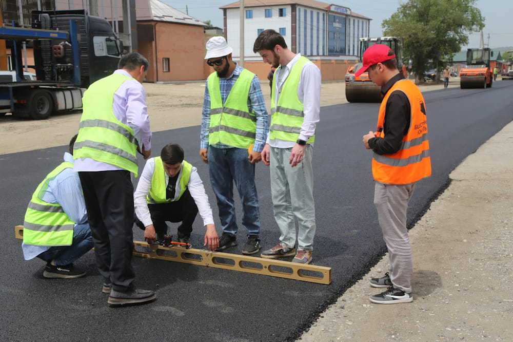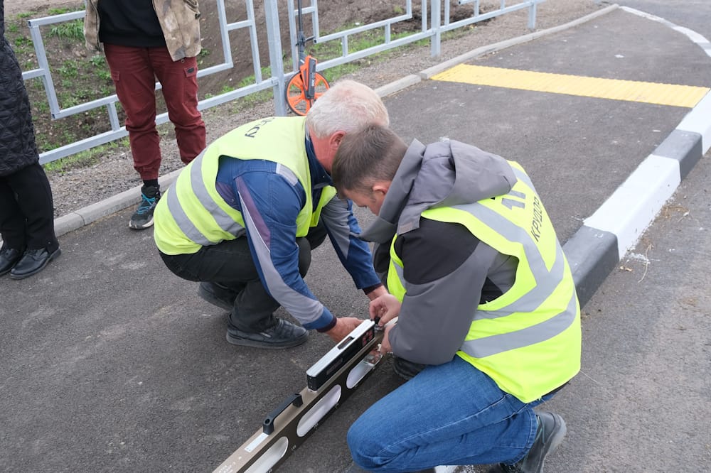 На объектах они проверяют соответствие проводимых работ проектно-сметной документации, толщину и температуру укладываемого асфальтобетона, ширину проезжей части, соблюдение рабочими правил техники безопасности, обеспечение доступной среды для маломобильных граждан, наличие необходимых дорожных знаков, а также организацию движения на время проведения работ.